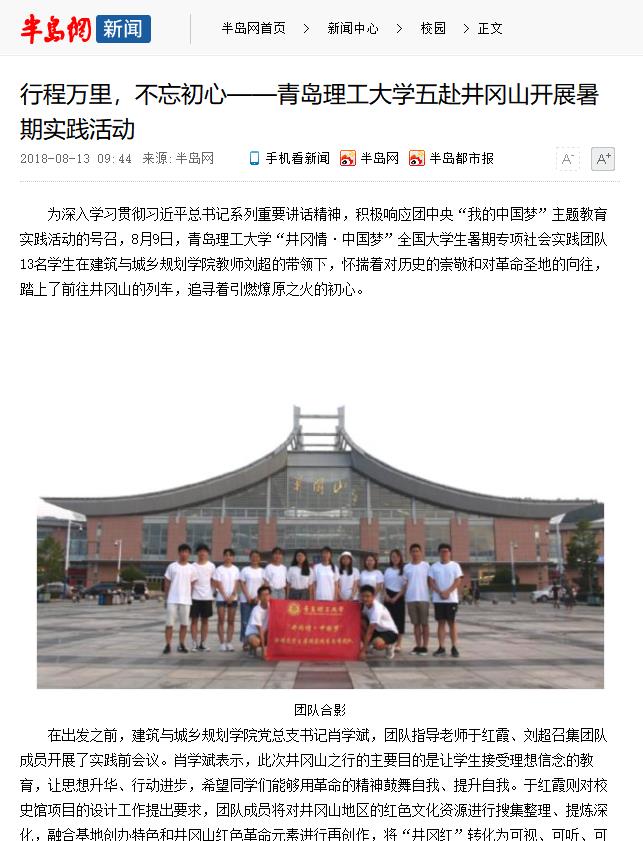 为深入学习贯彻习近平总书记系列重要讲话精神,积极响应团中央“我的中国梦”主题教育实践活动的号召,8月9日,伟德国际1946bv官网“井冈情·中国梦”全国大学生暑期专项社会实践团队13名学生在建筑与城乡规划学院教师刘超的带领下,怀揣着对历史的崇敬和对革命圣地的向往,踏上了前往井冈山的列车,追寻着引燃燎原之火的初心。