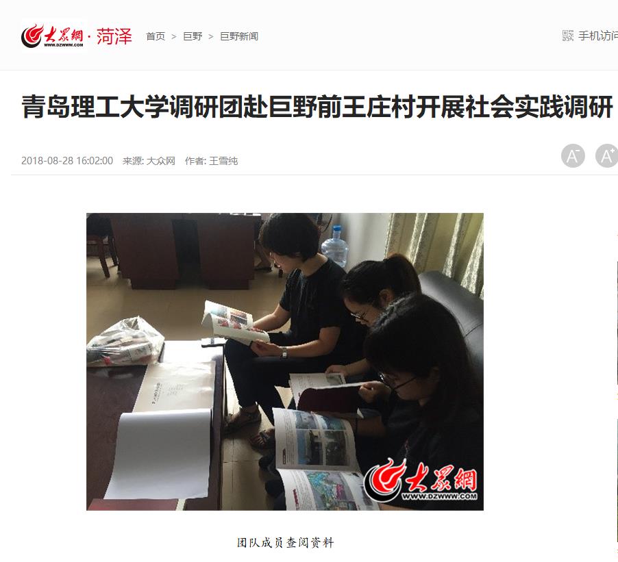 巨野县电视台了解到团队的调研工作后,也派记者前来进行采访,团队队长韩树娟接受采访时就团队为何来到前王庄村进行调研做出了解释:“我们了解到前王庄村具有深厚的文化底蕴和历史源流,村子里的特色民居建筑石头房也十分贴切我们专业本身的研究范畴,所以选择了前王庄村作为我们的调研地点。”