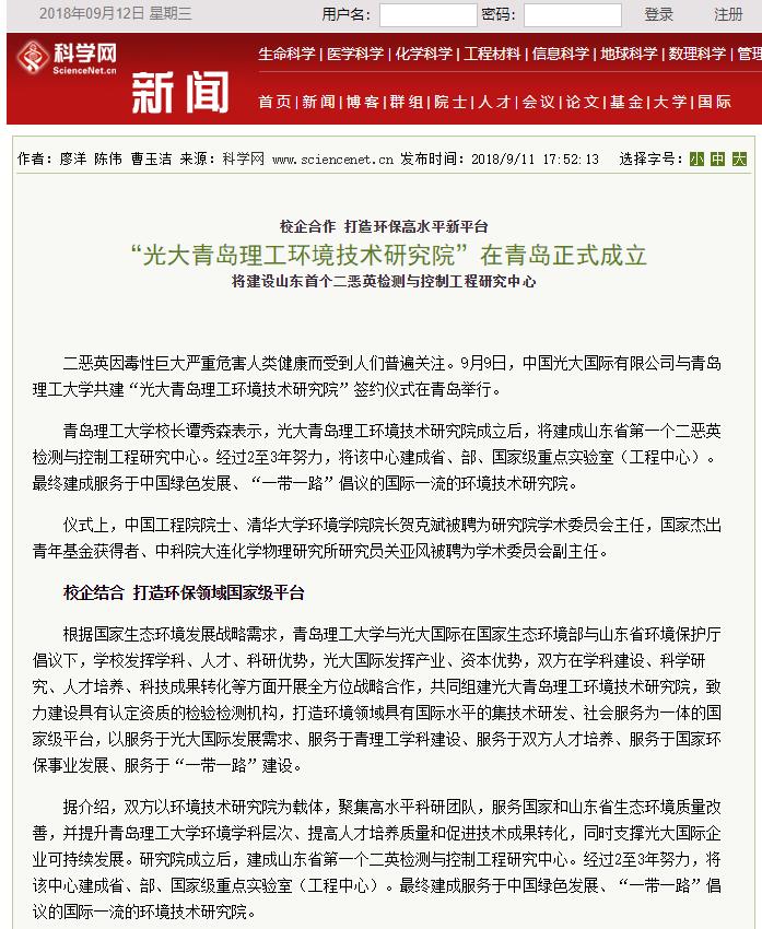 二恶英因毒性巨大严重危害人类健康而受到人们普遍关注。9月9日,中国光大国际有限公司与伟德国际1946bv官网共建“光大青岛理工环境技术研究院”签约仪式在青岛举行。