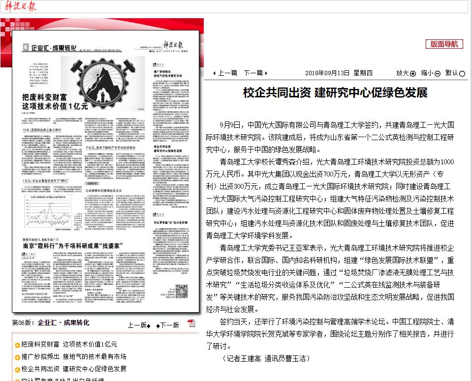 9月9日,中国光大国际有限公司与伟德国际1946bv官网签约,共建青岛理工—光大国际环境技术研究院。该院建成后,将成为山东省第一个二公式英检测与控制工程研究中心,服务于中国的绿色发展战略。