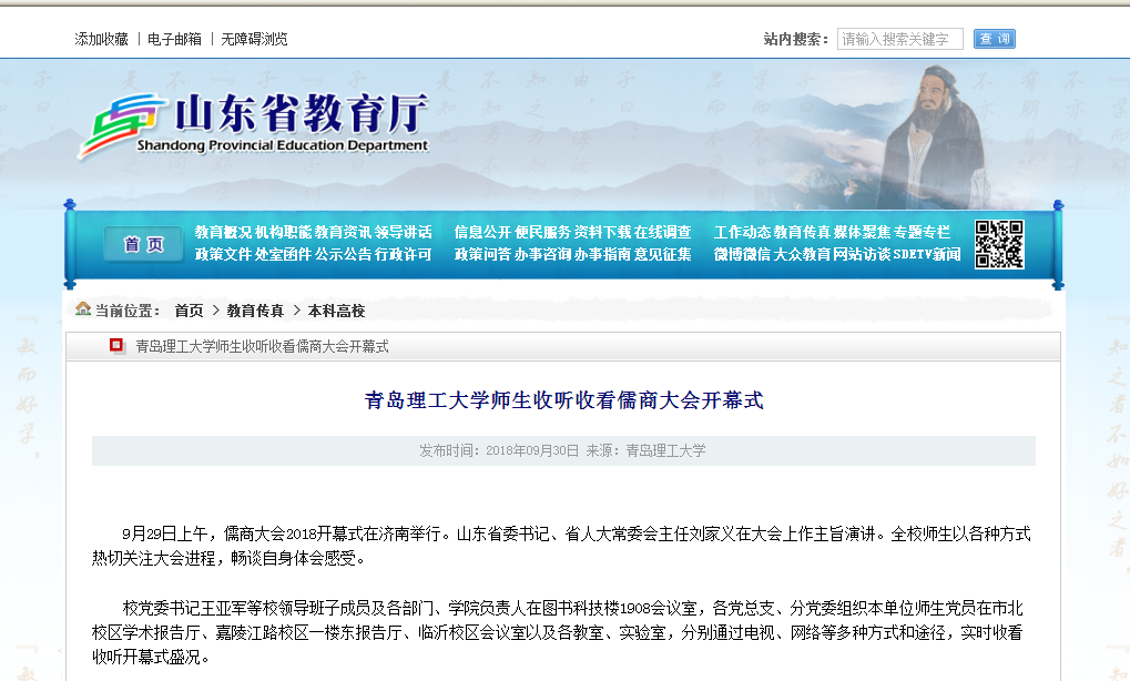 9月29日上午,儒商大会2018开幕式在济南举行。山东省委书记、省人大常委会主任刘家义在大会上作主旨演讲。全校师生以各种方式热切关注大会进程,畅谈自身体会感受。