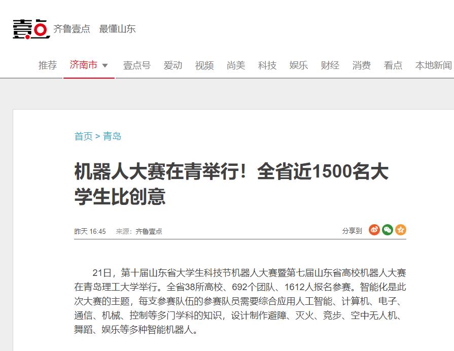 21日,第十届山东省大学生科技节机器人大赛暨第七届山东省高校机器人大赛在伟德国际1946bv官网举行。全省38所高校、692个团队、1612人报名参赛。智能化是此次大赛的主题,每支参赛队伍的参赛队员需要综合应用人工智能、计算机、电子、通信、机械、控制等多门学科的知识,设计制作避障、灭火、竞步、空中无人机、舞蹈、娱乐等多种智能机器人。