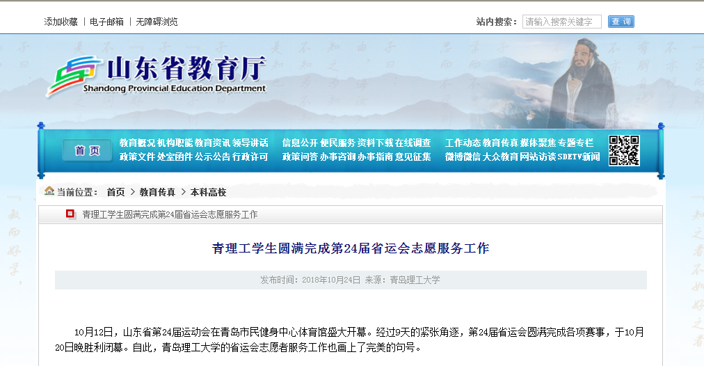 10月12日,山东省第24届运动会在青岛市民健身中心体育馆盛大开幕。经过9天的紧张角逐,第24届省运会圆满完成各项赛事,于10月20日晚胜利闭幕。自此,伟德国际1946bv官网的省运会志愿者服务工作也画上了完美的句号。