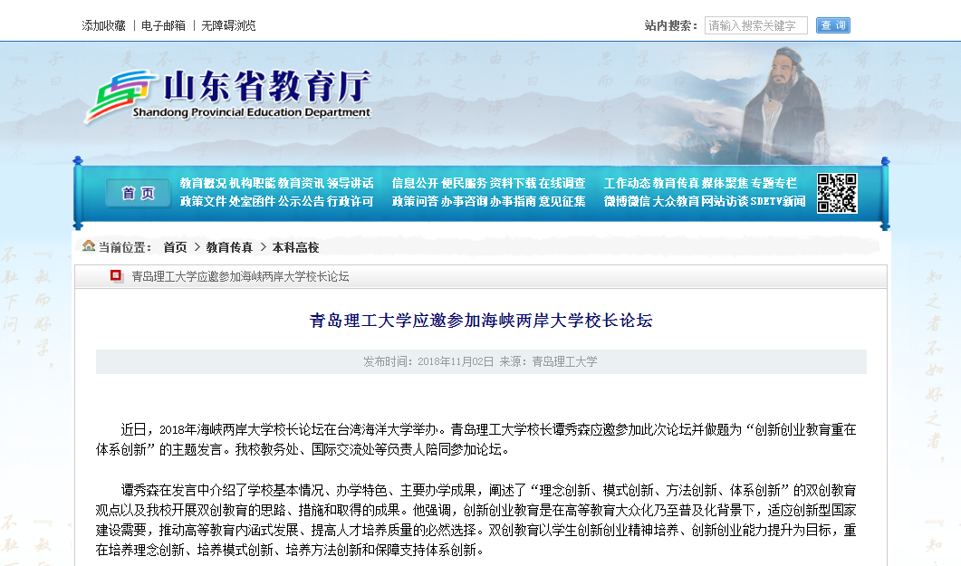 海峡两岸大学校长论坛自2002年起于山东省及台湾两岸高校轮流举办,会议针对高等教育所面临的挑战、学校可持续发展、两岸校际合作交流、大学治理和人才培养改革等议题,交流探讨,分享经验和成果,有力推动两岸高校的交流与合作,促进了两岸高等教育的发展与提升。