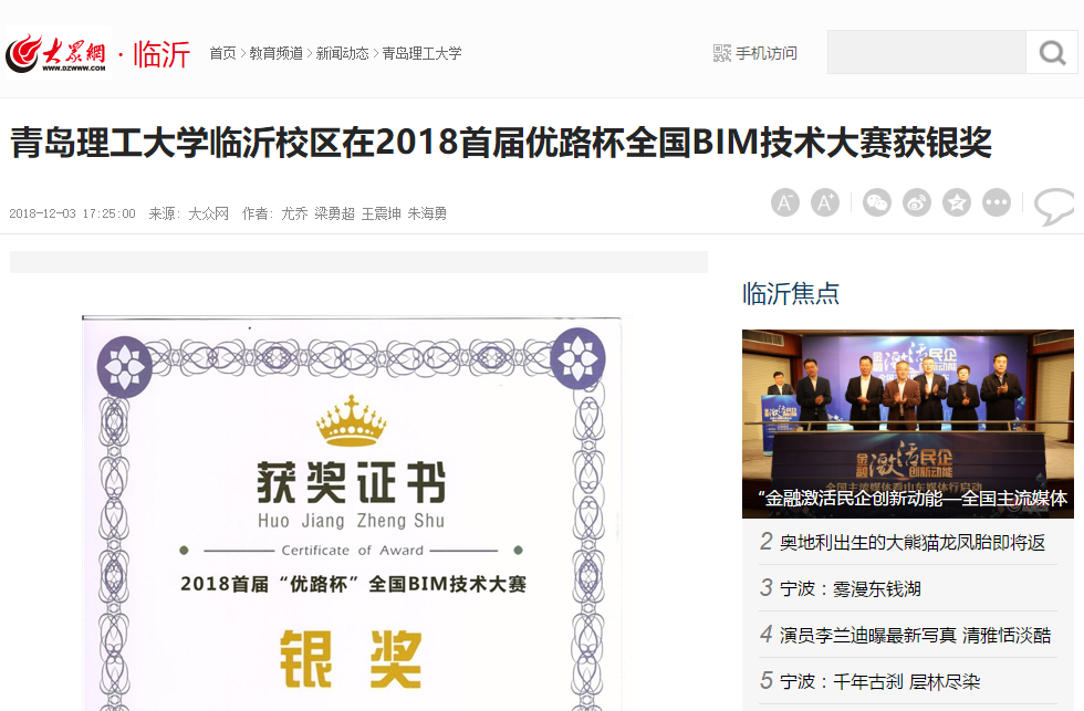 大众网临沂12月3日讯(记者 尤乔 梁勇超 见习记者 王震坤 通讯员 朱海勇)12月1日,由国家工业和信息化部人才交流中心主办,石家庄铁道大学承办,中国铁建、中国中铁、中国建筑设计研究院、中国建筑第八工程局、南方控股(澳门)、同济大学、东南大学、大连理工大学、中南大学等协办的2018首届优路杯全国BIM技术大赛在石家庄铁道大学落下帷幕,伟德国际1946bv官网临沂校区选派的“青理工梦之队”荣获院校赛银奖。