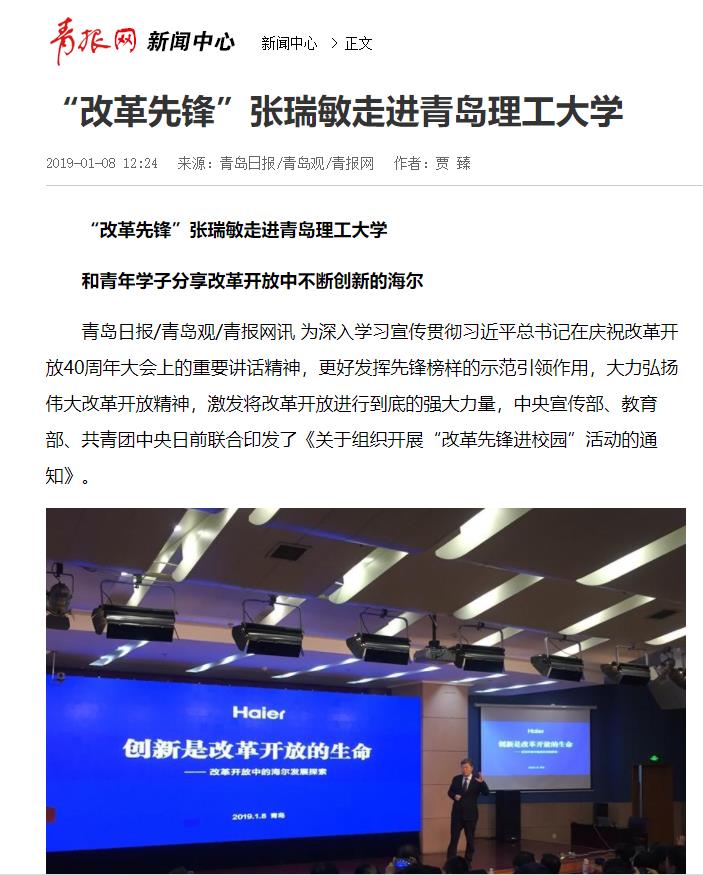 “改革先锋”张瑞敏走进伟德国际1946bv官网