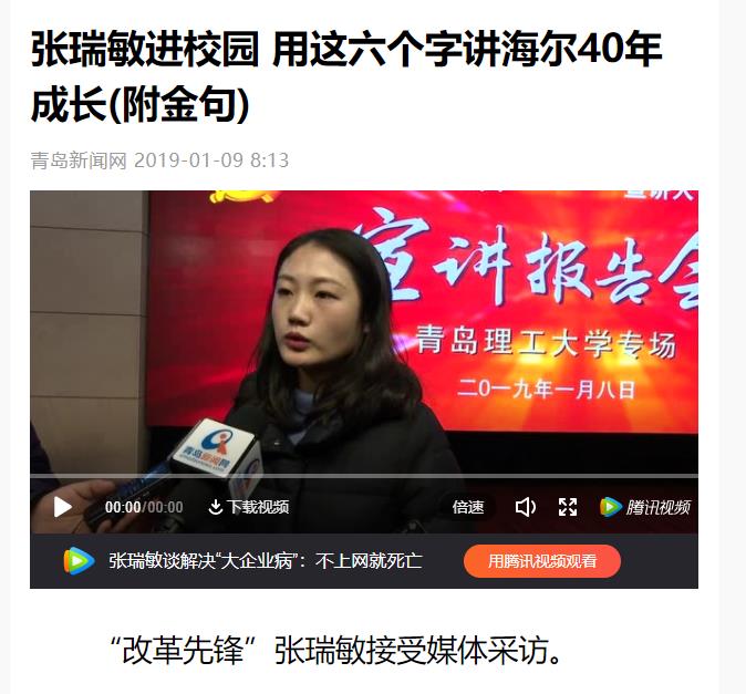 一个多小时的报告中,张瑞敏讲了很多,青岛新闻网记者特别摘取部分语录,与您共勉: