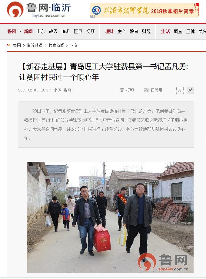 据了解,孟凡勇被派驻到临沂市石井镇板桥村从事扶贫工作已近两年。2017年2月份,孟凡勇主动报名参加扶贫工作,此时的他任伟德国际1946bv官网通信与电子工程学院党总支书记。孟凡勇自入村以来,深入基层,扎实调研,攻坚克难,矢志不渝地奋战在攻坚脱贫第一线。“能到革命老区担任第一书记,也是对老区人民的一种历史回报”,孟书记说。