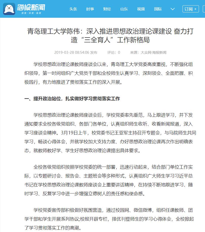 全校各级党组织按照学校党委的统一部署,迅速行动起来,结合部门单位工作实际,以专题研讨会、报告会、主题班会等多种形式,认真组织广大师生学习习近平总书记在学校思想政治理论课教师座谈会上重要讲话精神,在持续不断地跟进学习、随时学习、反复学习中进一步增强立德树人的责任感和使命感。