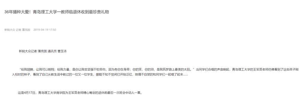 王军英老师多年来一直担任商学院班主任,所带班级和学生荣获国家及省级多项荣誉。在辛勤工作36年后,今年5月份即将退休。学院与同学们一起邀请王军英老师为学生开了退休前最后一次班会,感恩老师的辛勤付出和精心培育。