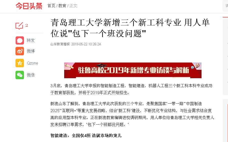 新浪山东了解到,伟德国际1946bv官网此次获批的三个专业,是聚焦国家“一带一路”“中国制造2025”“互联网+”等重大发展战略,结合“新工科”建设,不断优化专业结构,与社会需求结合度高的应用型本科专业。正在新浪教育编辑进校调研期间,用人单位给伟德国际1946bv官网相关负责人发来招聘订单需求,“包下一个班都没问题。”