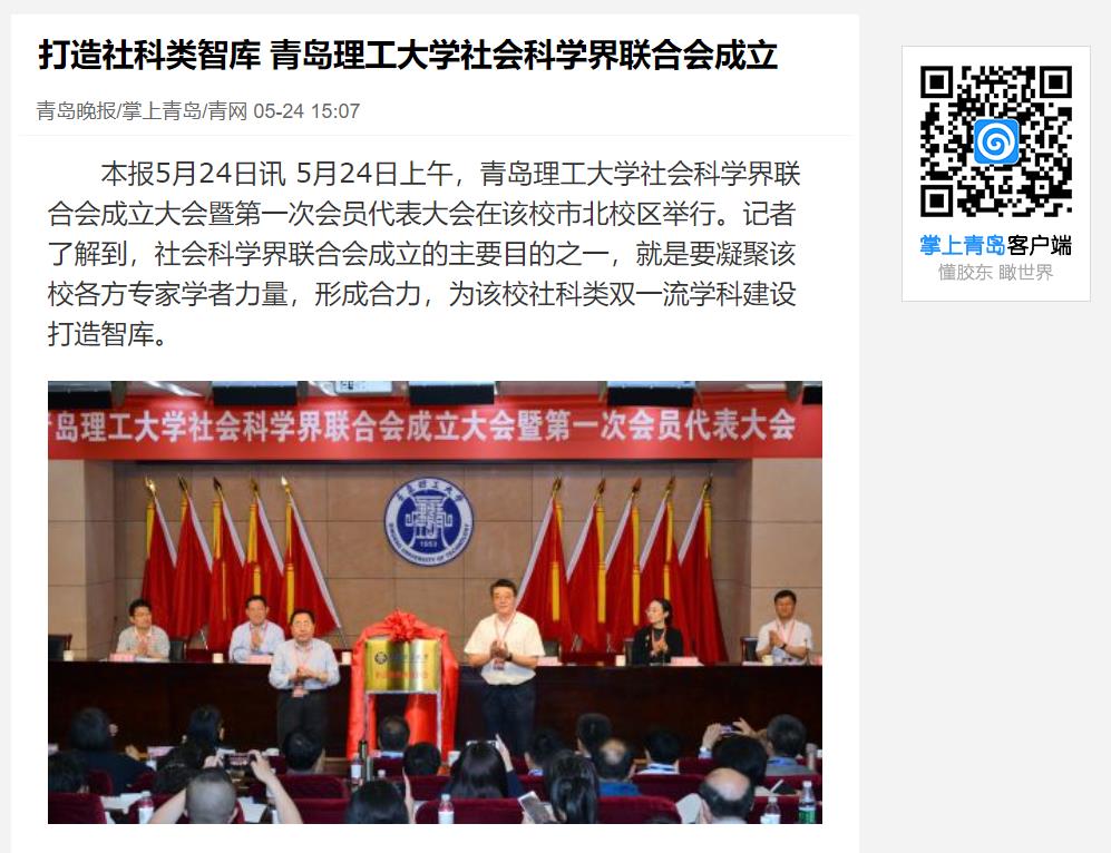 山东省社会科学界联合会党组副书记、副主席周忠高介绍说,伟德国际1946bv官网社会科学界联合会是我省高校成立的第66个社会科学界联合会,可见该联合会在高校发展建设中发挥的智囊推动作用日益受到重视。而由学校党委书记担任联合会主席一职,足见青岛理工对该联合会的重视程度。