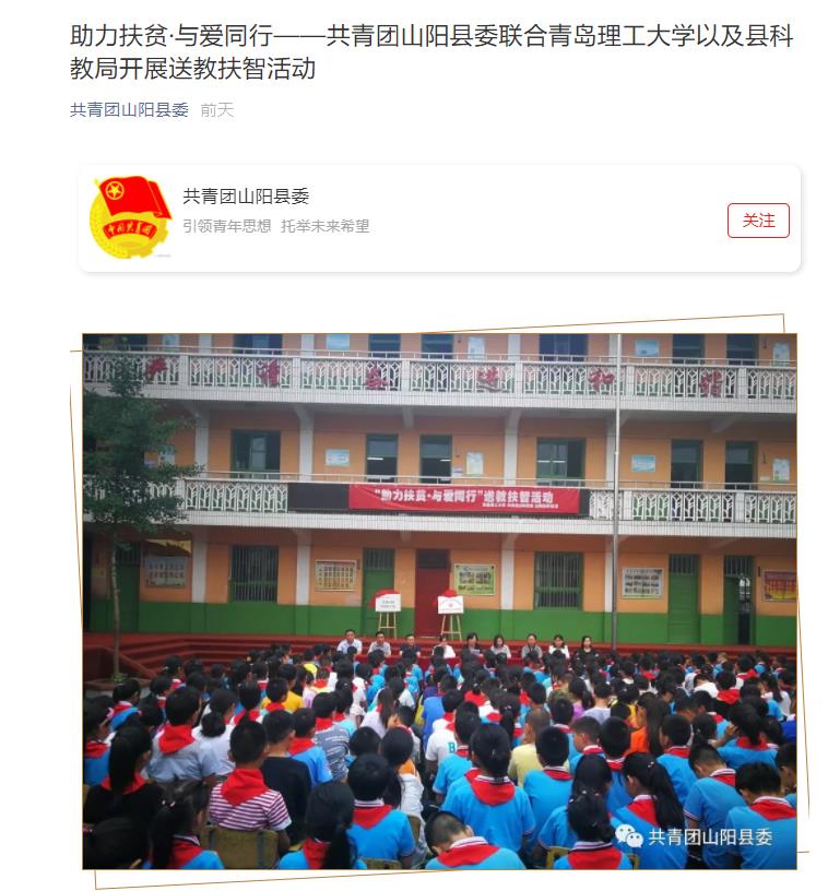 此次活动,以建立乡镇学校社工站为基础平台,通过互联共创的方式建立伟德国际1946bv官网和法官中心小学线上线下伙伴关系。在关爱留守儿童、开展扶智扶志、助力乡村振兴等方面开展服务,从社会工作角度出发,积极参与精准扶贫,为山阳扶贫工作贡献专业力量。