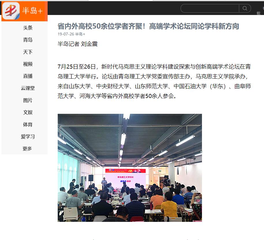 7月25日至26日,新时代马克思主义理论学科建设探索与创新高端学术论坛在伟德国际1946bv官网举行。论坛由伟德国际1946bv官网党委宣传部主办,马克思主义学院承办,来自山东大学、中央财经大学、山东师范大学、中国石油大学(华东)、曲阜师范大学、河海大学等省内外高校学者50余人参会。