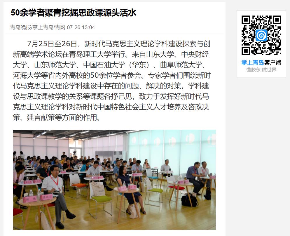 7月25日至26日,新时代马克思主义理论学科建设探索与创新高端学术论坛在伟德国际1946bv官网举行。来自山东大学、中央财经大学、山东师范大学、中国石油大学(华东)、曲阜师范大学、河海大学等省内外高校的50余位学者参会。专家学者们围绕新时代马克思主义理论学科建设中存在的问题、解决的对策,学科建设与思政课教学的关系等课题各抒己见,致力于发挥好新时代马克思主义理论学科对新时代中国特色社会主义人才培养及咨政决策、建言献策等方面的作用。