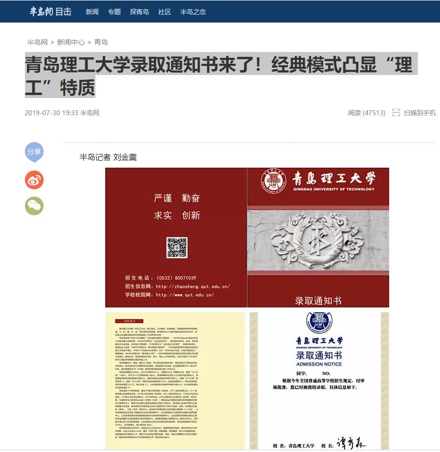 7月30日,记者从伟德国际1946bv官网了解到,第一批录取通知书从青岛发出,即将送到今年新生的手中。青理工录取通知书采用经典模式,凸显“理工”特质。据悉,录取通知书发放时间将在青理工招生信息网持续更新,通知书自发出之日起大约一周内到达。