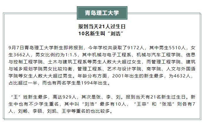 10名新生叫“刘浩”