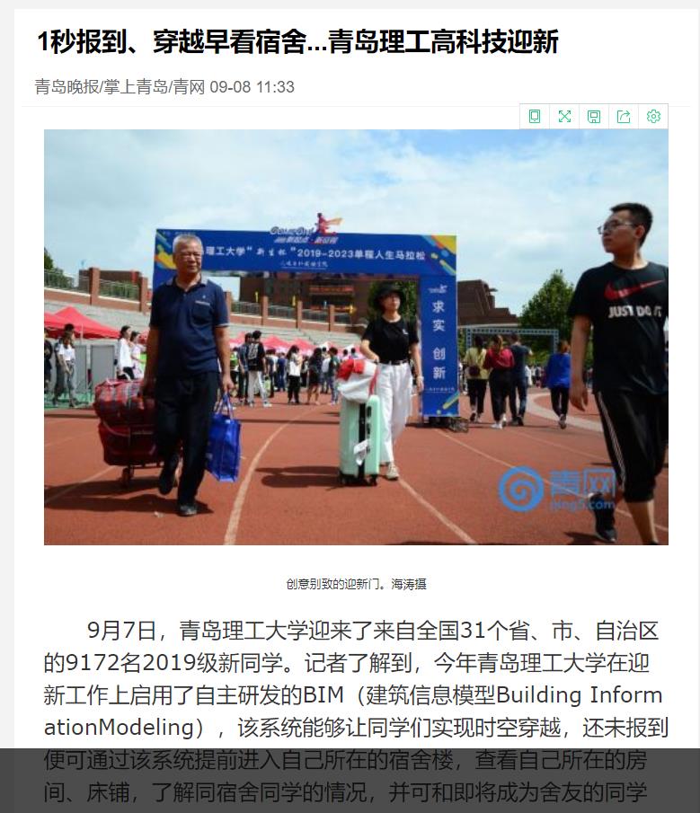 9月7日,伟德国际1946bv官网迎来了来自全国31个省、市、自治区的9172名2019级新同学。记者了解到,今年伟德国际1946bv官网在迎新工作上启用了自主研发的BIM(建筑信息模型Building InformationModeling),该系统能够让同学们实现时空穿越,还未报到便可通过该系统提前进入自己所在的宿舍楼,查看自己所在的房间、床铺,了解同宿舍同学的情况,并可和即将成为舍友的同学们交流。