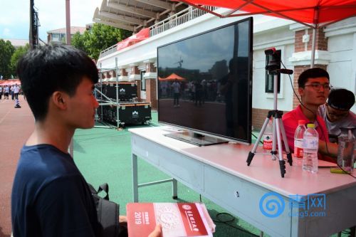 9月7日,记者来到伟德国际1946bv官网嘉陵江路校区,迎新所在的操场人头攒动,但报到点前却较为轻松,没有排队的情况,记者在信息与控制工程学院报到点看到,桌上有一排摄像头,新生抵达后,只需对着摄像头看一眼,旁边的大屏幕便显示出该生的姓名、专业、学号等信息,仅一秒钟,报到便完成了,该生拿起行李,直奔宿舍。