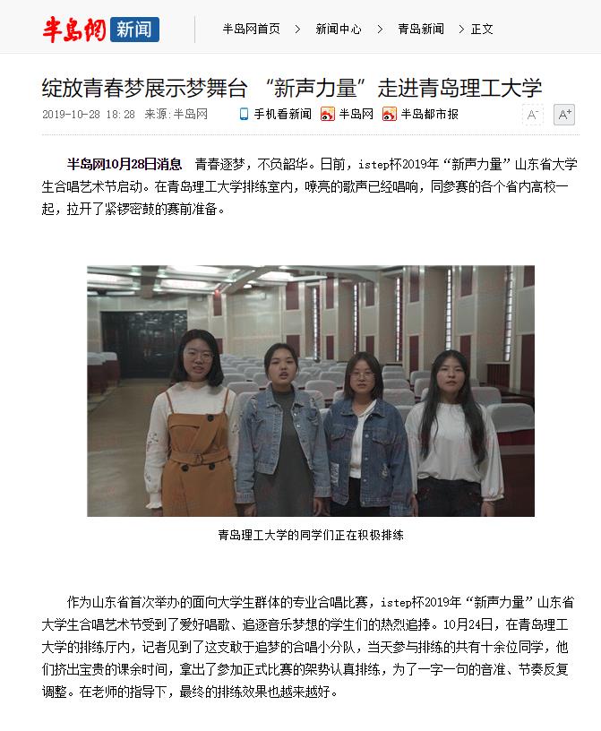 据介绍,istep杯2019年“新声力量”山东省大学生合唱艺术节面向全省145所高校近百万名在校大学生,活动以“歌唱祖国,逐梦青春”为主题,比赛采用合唱、小合唱形式进行。目前各高校正在如火如荼地组织第一阶段的初赛,12月2日将有40支优秀队齐聚青岛参加决赛。活动鼓励全体大学生积极参与,鼓励和支持演唱原创作品,力争通过比赛创作出一批讴歌党、讴歌祖国、讴歌人民、讴歌新时代的精品佳作,弘扬主旋律、激发正能量。