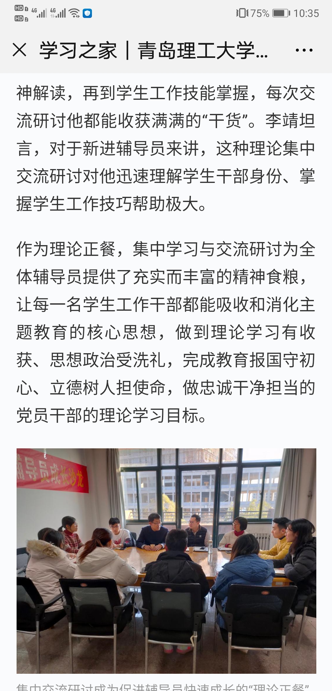 每日时政热点学习作为理论甜点,让每一名学生工作干部将理论学习作为习惯养成,通过研读理论文章,并结合自己的工作经验、人生体验,相互交流学习成果,在互助学习的过程中,不断反思、自省、领悟,从而达到增见识、宽格局、广境界的理论学习效果,在学生工作办公室形成了理论学习新风尚。