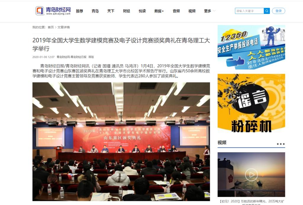 青岛财经日报/青岛财经网讯(记者 国瑾 通讯员 马鸿洋)1月4日,2019年全国大学生数学建模竞赛和电子设计竞赛山东赛区颁奖典礼在伟德国际1946bv官网市北校区学术报告厅举行。山东省内50余所高校数学建模和电子设计竞赛主管领导及竞赛获奖教师、学生代表近280人参加了颁奖典礼。