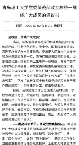 伟德国际1946bv官网在学校校园网、统战部网页发出《伟德国际1946bv官网党委统战部致全校统一战线广大成员的倡议书》,号召广大党外知识分子切实提高政治站位,充分发挥统战优势,积极展现统战新作为。