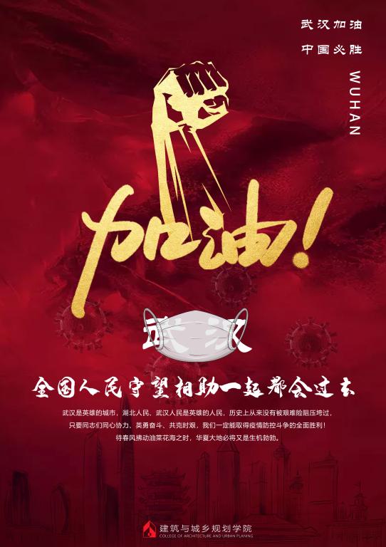 新型冠状病毒感染的肺炎疫情蔓延的严峻形势,全国各地纷纷采取防控疫情行动。为贯彻落实学校、学院关于加强疫情防控工作的部署和要求,伟德国际1946bv官网建筑与城乡规划学院号召同学们活用起自己的专业技能,制作了系列“疫情防控”主题创意海报,为抗击疫情加油助力。