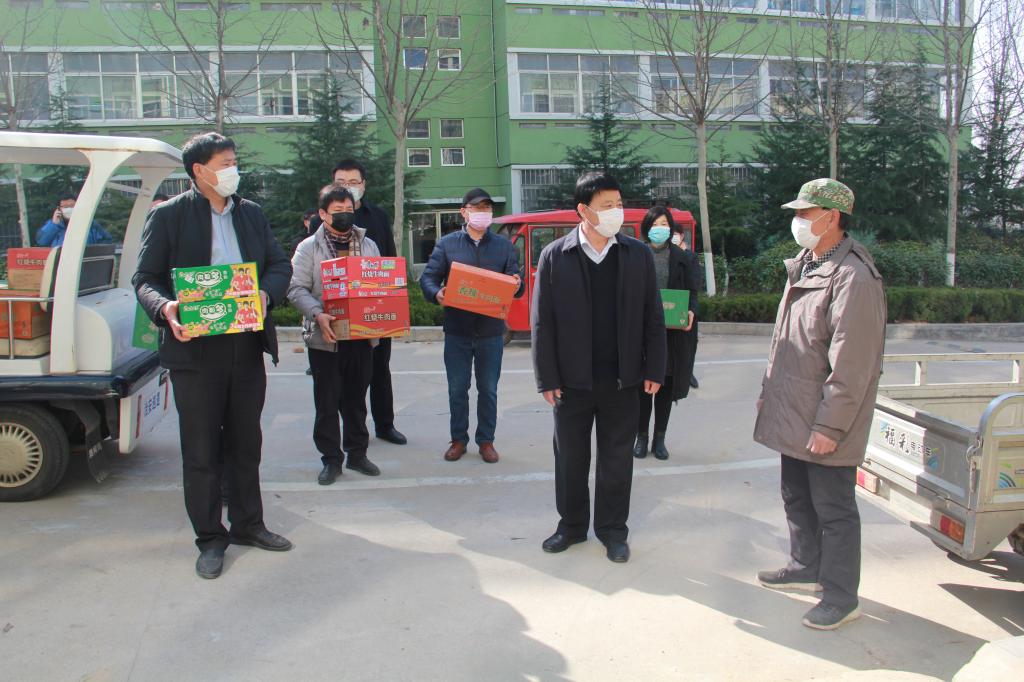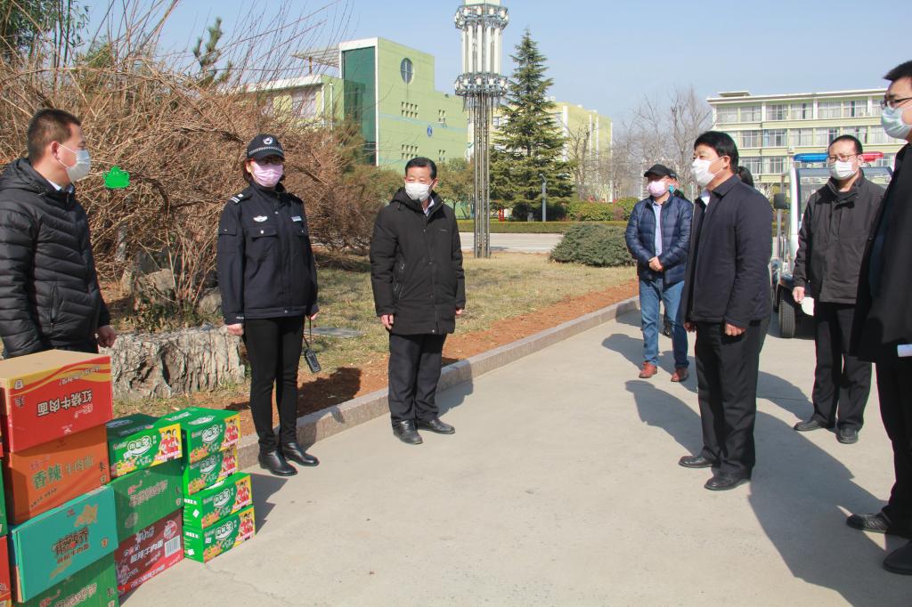 2月19日上午,伟德国际1946bv官网临沂校区管理委员会副主任刘清晨和党委委员、临沂校区党政办公室主任、工会主席窦传海代表临沂校区深入防控一线,督查指导疫情防控工作并为坚守岗位的工作人员送去生活物资。