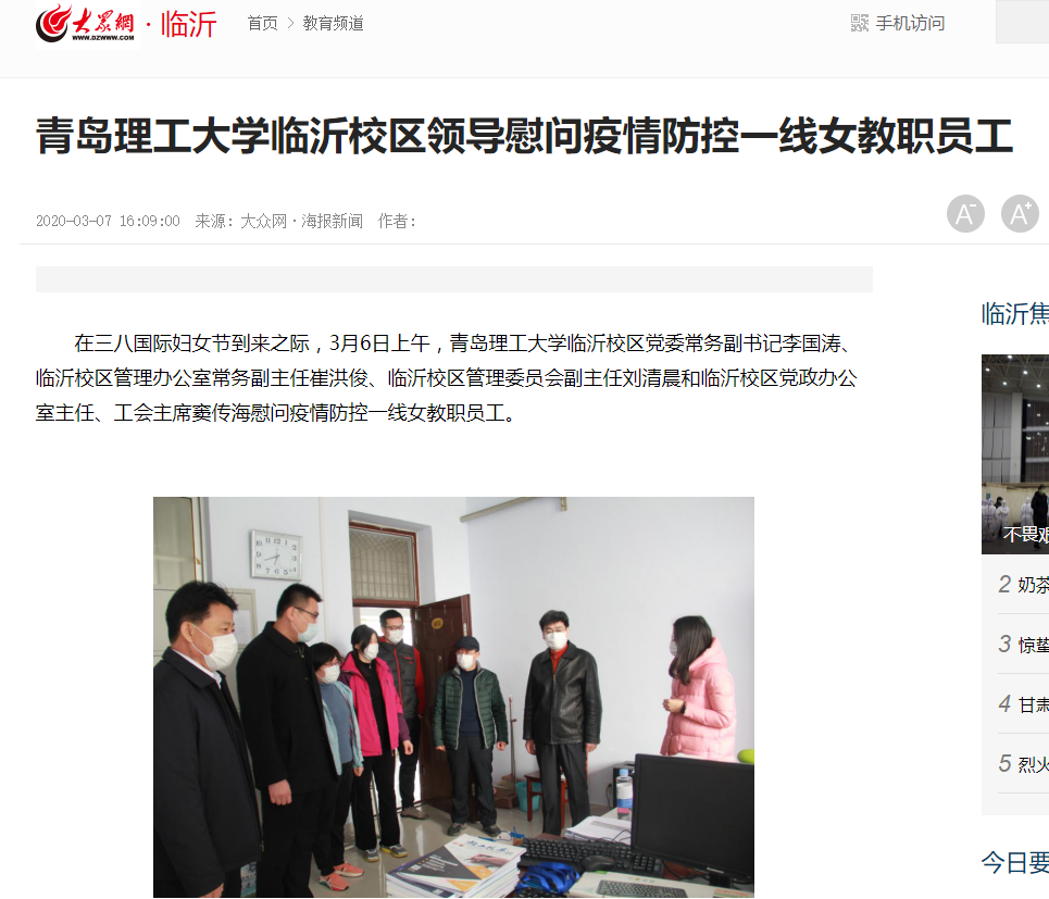 临沂校区党委的关心进一步提振了广大女教职员工抗击疫情的信心,大家纷纷表示要克服困难,努力工作,不松劲、不懈怠,坚决落实各项防控举措,以高度负责的态度履行好工作职责,为扎实推进校区各项工作贡献力量。(通讯员:陈玉静)