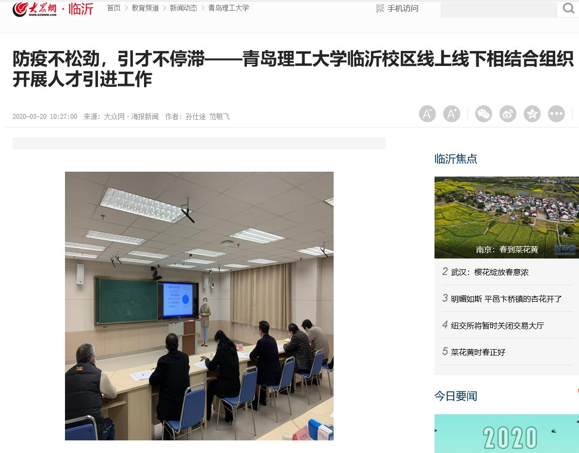 在疫情防控的特殊时期,为确保临沂校区现阶段人才引进工作顺利推进,临沂校区人事部通过线上线下相结合的方式组织实施校区2020年博士招聘面试工作,及时延揽高层次人才。