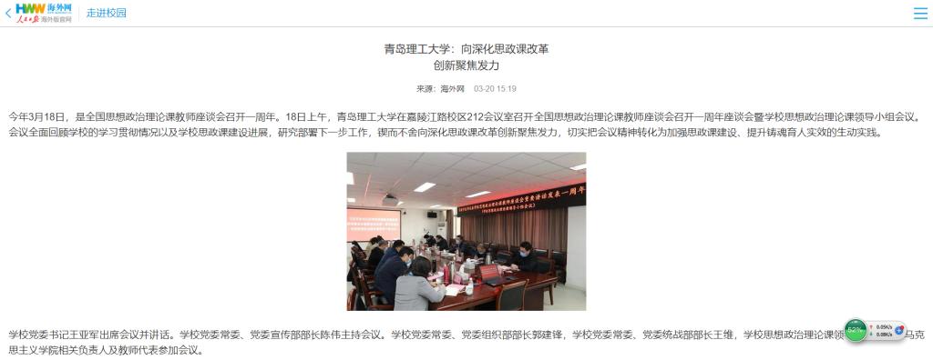 今年3月18日,是全国思想政治理论课教师座谈会召开一周年。18日上午,伟德国际1946bv官网在嘉陵江路校区212会议室召开全国思想政治理论课教师座谈会召开一周年座谈会暨学校思想政治理论课领导小组会议。会议全面回顾学校的学习贯彻情况以及学校思政课建设进展,研究部署下一步工作,锲而不舍向深化思政课改革创新聚焦发力,切实把会议精神转化为加强思政课建设、提升铸魂育人实效的生动实践。