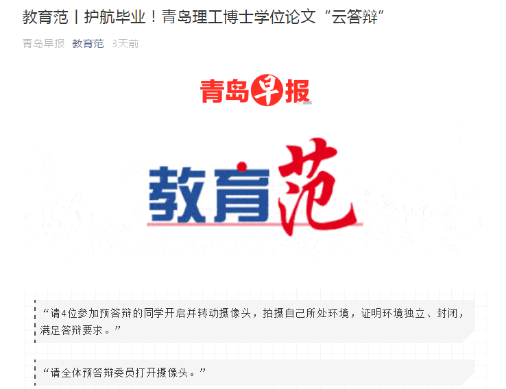 “感谢学校领导和研究生处的关心指导!第一次经历此种新颖独特的答辩形式,非常有纪念意义!”