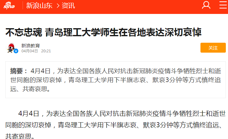 4月4日,为表达全国各族人民对抗击新冠肺炎疫情斗争牺牲烈士和逝世同胞的深切哀悼,伟德国际1946bv官网用下半旗志哀、默哀3分钟等方式慎终追远、共寄哀思。