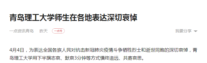 4月4日,为表达全国各族人民对抗击新冠肺炎疫情斗争牺牲烈士和逝世同胞的深切哀悼,伟德国际1946bv官网用下半旗志哀、默哀3分钟等方式慎终追远、共寄哀思。