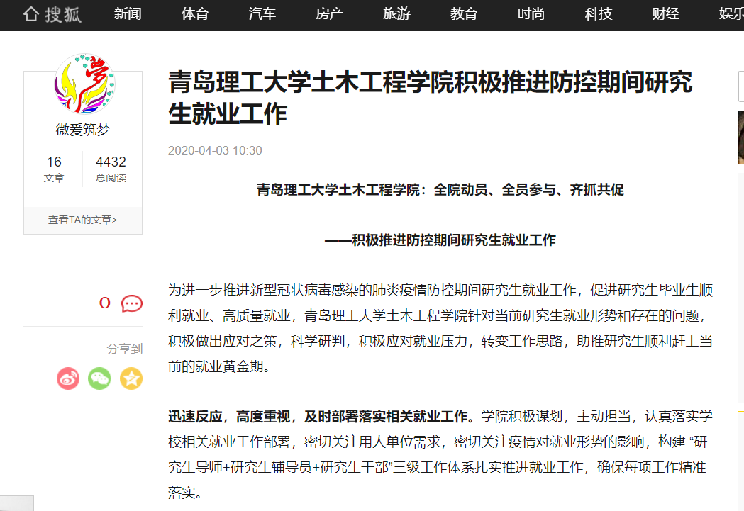 细心部署,周密安排,制定研究生就业工作方案。为应对目前疫情防控的严峻形势,提前预判,制定就业工作方案,保障研究生就业工作正常有序进行,及时公布就业信息,整理国家、山东省学校相关就业政策,搜集真实可靠的官方就业需求信息,利用毕业研究生微信群、QQ群等及时发布;加强就业咨询服务,开通就业咨询联系方式,建立毕业研究生就业咨询微信群、QQ群、线上就业互助小组等,解答毕业研究生在网上网上招聘、网上签约、面试技巧等问题;开展就业心理调适,利用各种线上方式对毕业研究生进行心理疏导,教育引导毕业研究生及时关注相关招录面试的官方通知,统筹利用好宝贵时间,积极准备,及时调整应考策略;积极开展研究生毕业教育工作,教育毕业研究生不参加人员聚集的各类招聘活动。