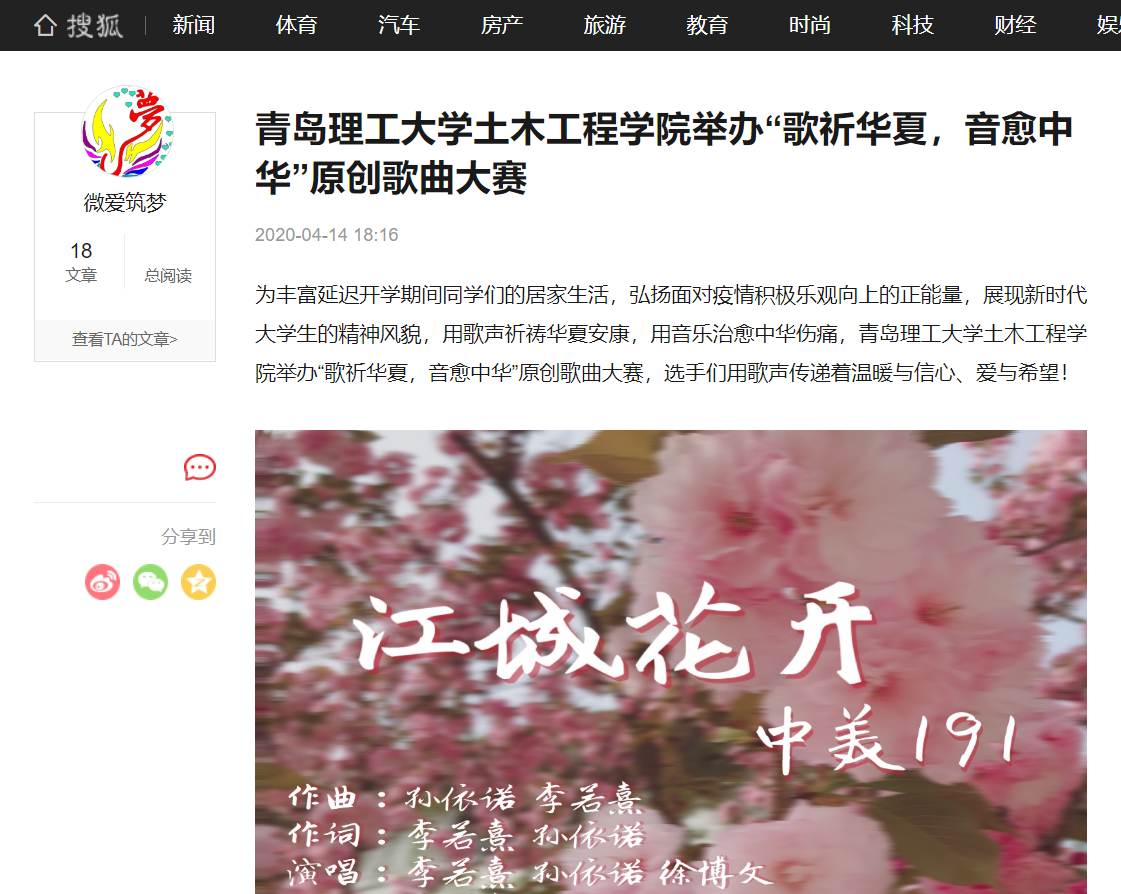 为丰富延迟开学期间同学们的居家生活,弘扬面对疫情积极乐观向上的正能量,展现新时代大学生的精神风貌,用歌声祈祷华夏安康,用音乐治愈中华伤痛,伟德国际1946bv官网土木工程学院举办“歌祈华夏,音愈中华”原创歌曲大赛,选手们用歌声传递着温暖与信心、爱与希望!