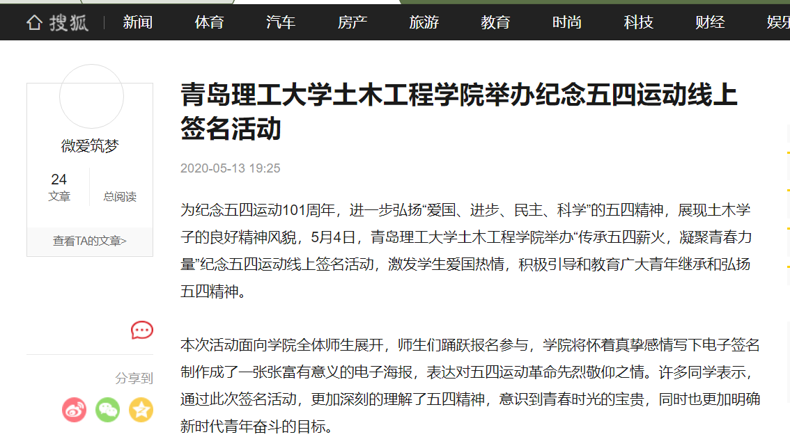 为纪念五四运动101周年,进一步弘扬“爱国、进步、民主、科学”的五四精神,展现土木学子的良好精神风貌,5月4日,伟德国际1946bv官网土木工程学院举办“传承五四薪火,凝聚青春力量”纪念五四运动线上签名活动,激发学生爱国热情,积极引导和教育广大青年继承和弘扬五四精神。