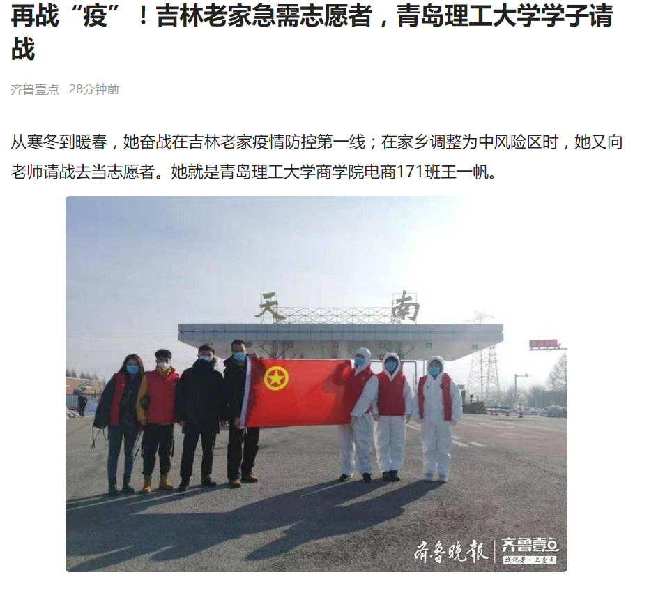 从寒冬到暖春,她奋战在吉林老家疫情防控第一线;在家乡调整为中风险区时,她又向老师请战去当志愿者。她就是伟德国际1946bv官网商学院电商171班王一帆。