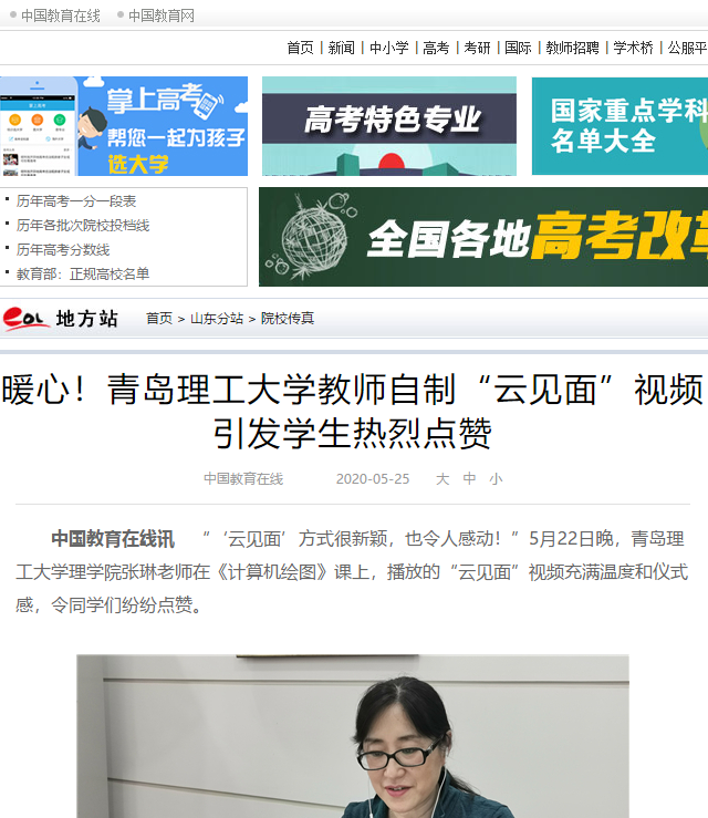 中国教育在线讯 “‘云见面’方式很新颖,也令人感动!”5月22日晚,伟德国际1946bv官网理学院张琳老师在《计算机绘图》课上,播放的“云见面”视频充满温度和仪式感,令同学们纷纷点赞。