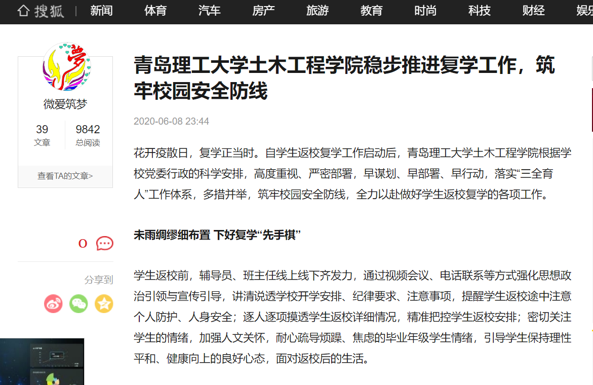 花开疫散日,复学正当时。自学生返校复学工作启动后,伟德国际1946bv官网土木工程学院根据学校党委行政的科学安排,高度重视、严密部署,早谋划、早部署、早行动,落实“三全育人”工作体系,多措并举,筑牢校园安全防线,全力以赴做好学生返校复学的各项工作。