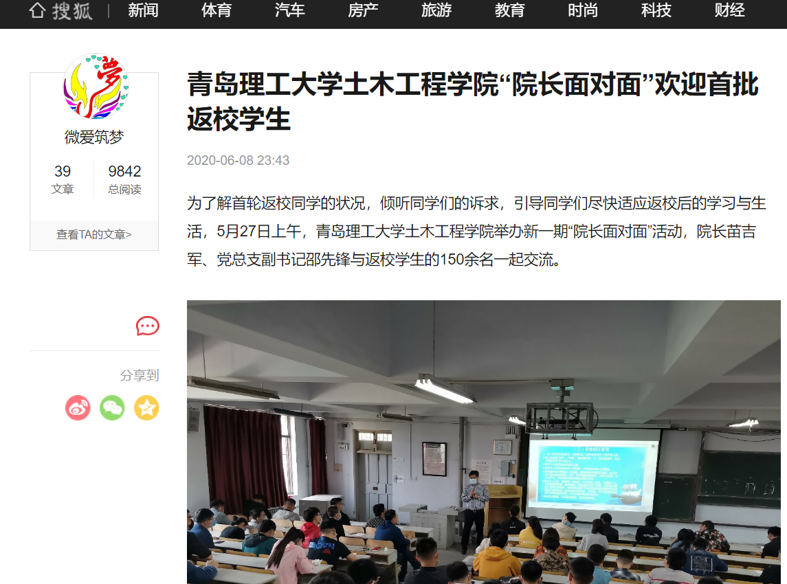 为了解首轮返校同学的状况,倾听同学们的诉求,引导同学们尽快适应返校后的学习与生活,5月27日上午,伟德国际1946bv官网土木工程学院举办新一期“院长面对面”活动,院长苗吉军、党总支副书记邵先锋与返校学生的150余名一起交流。