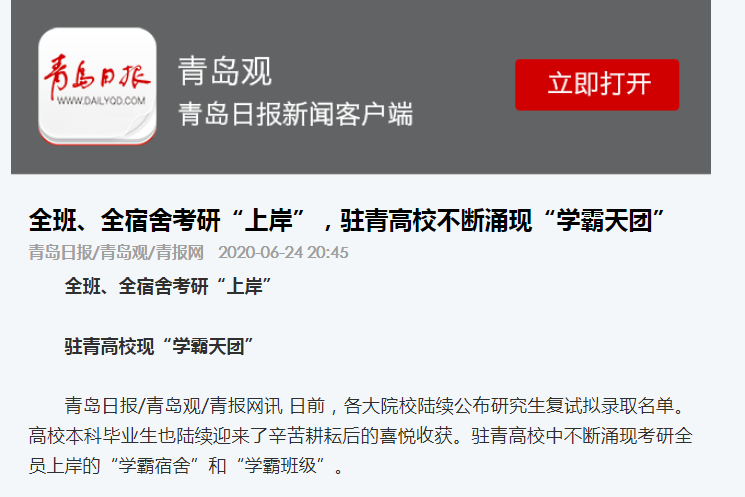 青岛日报:全班、全宿舍考研“上岸” 驻青高校不断涌现“学霸天团”