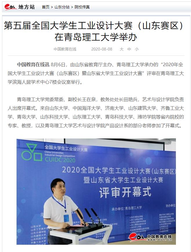 据介绍,大赛是在教育部高等教育司指导下,由教育部高等学校工业设计专业教学指导委员会主办的全国性的大学生学科竞赛。自2012年开办以来,每两年举办一次,至今是第五届。在山东省教育厅的指导下,在省内各兄弟院校的大力支持和配合下,伟德官网已连续成功承办了四届山东赛区竞赛。本次竞赛的主题是“万物始新·设计无界”。2020年是特殊的一年,后疫情和新时代的来临,召唤着新设计人才的成长。经过历练的青年一代,更具使命感及责任感,他们将在中国的设计教育和产业创新中发挥更大的核心驱动作用。山东赛区工作的顺利组织也将使山东的工业设计发展向前迈进一步,全面提升山东高校设计专业人才的创新能力。(中国教育在线/姜甜甜 通讯员/曹玉洁 王俊富)