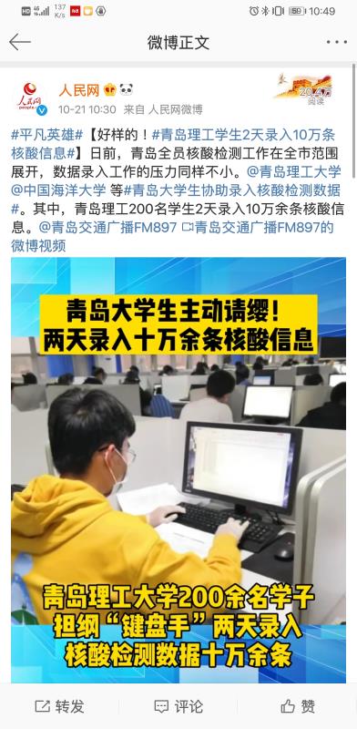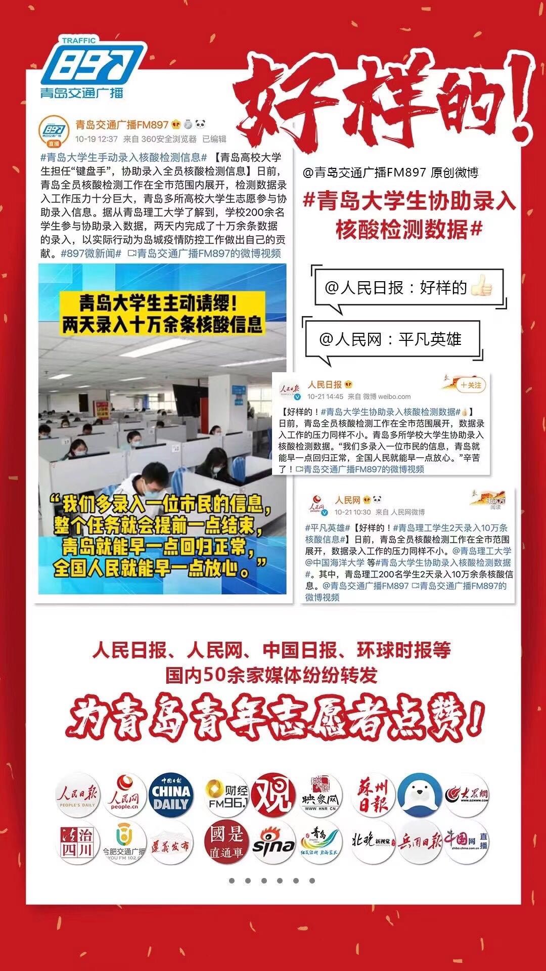 青岛交通广播、人民日报、人民网等:青岛大学生手动录入核酸检测信息