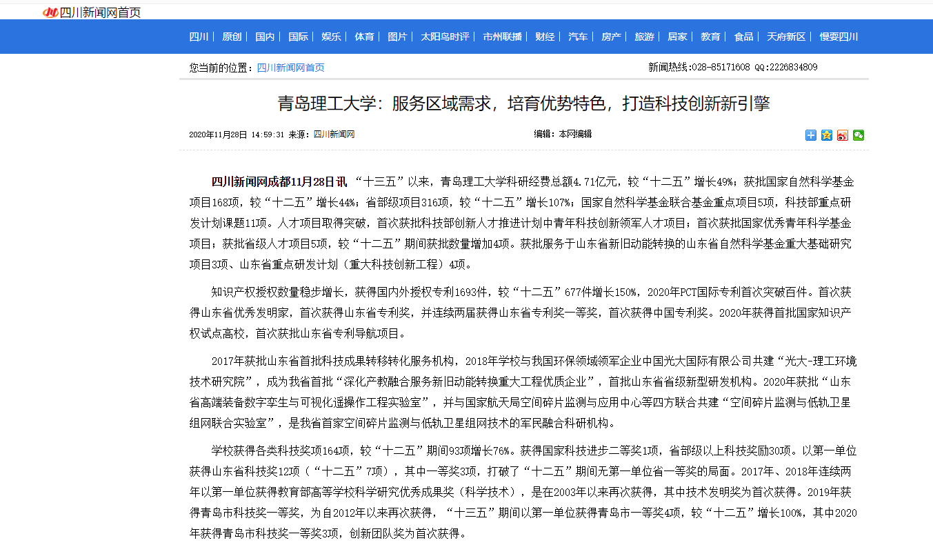 学校坚持“立足青岛、服务山东、面向全国”,着力探索校企、校地合作新模式,加快推进科教产融合,打造“区域特色+学科优势”科技创新“双引擎”,赋能科研高质量发展,为区域经济社会建设提供更多的智力、人力和技术支持。