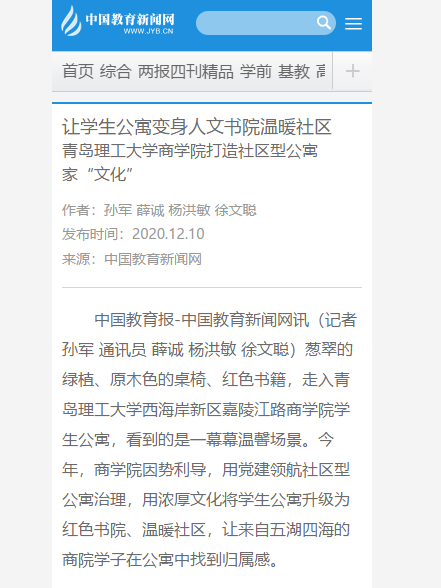 在商学院学生眼中,现在的学生公寓不仅是有着自习室、公寓书屋和咖啡店的书院式公寓,还成了拥有着理论宣讲小讲堂、佳敏公寓补习班、就业宣讲加油站、文艺表演V舞台等服务学生、方便学生的社区平台。