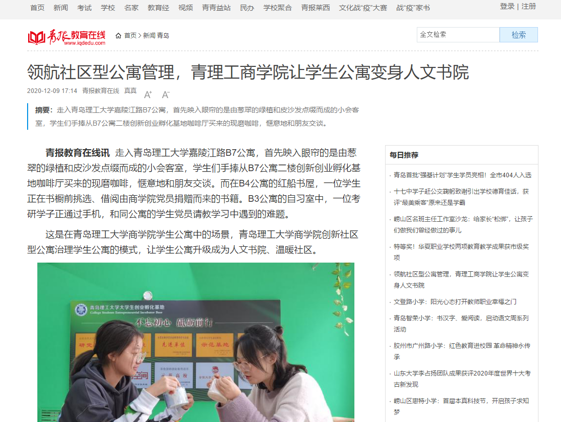 青报教育在线讯 走入伟德国际1946bv官网嘉陵江路B7公寓,首先映入眼帘的是由葱翠的绿植和皮沙发点缀而成的小会客室,学生们手捧从B7公寓二楼创新创业孵化基地咖啡厅买来的现磨咖啡,惬意地和朋友交谈。而在B4公寓的红船书屋,一位学生正在书橱前挑选、借阅由商学院党员捐赠而来的书籍。B3公寓的自习室中,一位考研学子正通过手机,和同公寓的学生党员请教学习中遇到的难题。
