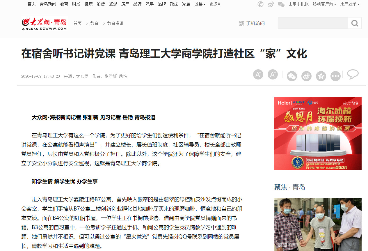 在伟德国际1946bv官网有这么一个学院,为了更好的给学生们创造便利条件,“在宿舍就能听书记讲党课,在公寓就能看相声演出”,并建立楼长、层长值班制度,社区辅导员、楼长全部由教师党员担任,层长由党员和入党积极分子担任。除此以外,这个学院还为了保障学生们的安全,建立了安全小分队进行安全巡视,这就是伟德国际1946bv官网商学院。