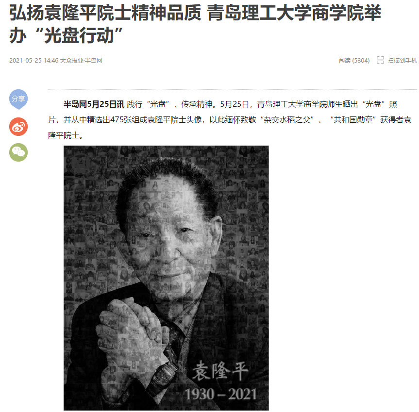大众报业·半岛网:弘扬袁隆平院士精神品质 伟德国际1946bv官网商学院举办“光盘行动”